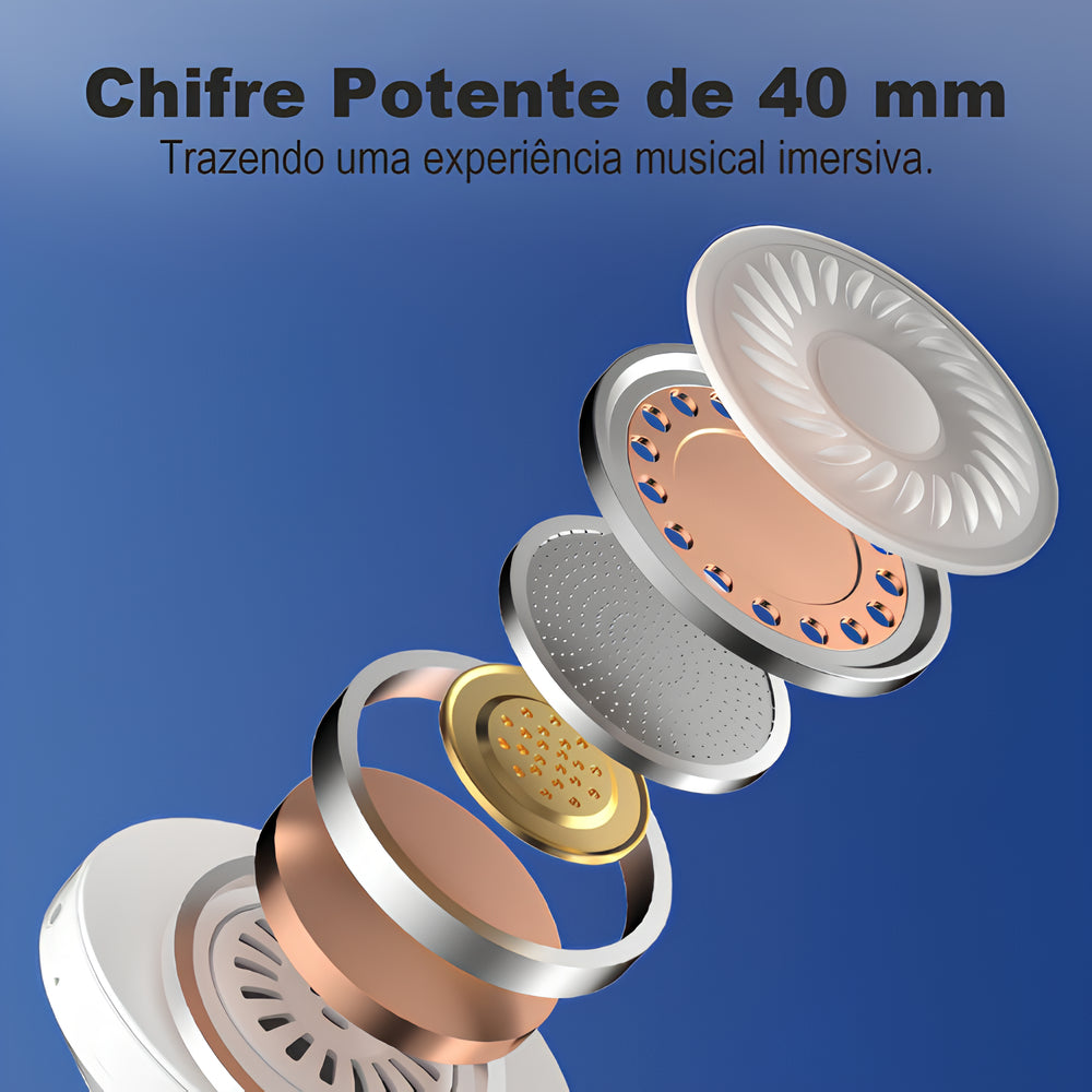 Suporte a Cartão TF: Use o fone sem celular — insira seu cartão e ouça suas músicas favoritas direto do fone.