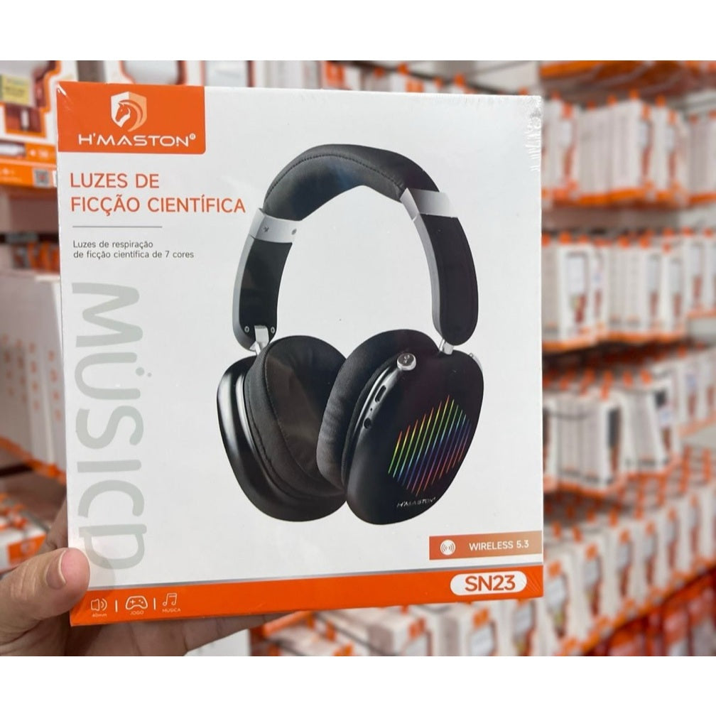 Fone Bluetooth H’maston SN-23 com Luz RGB 🎧 Hi-Fi, Cartão TF, Bluetooth 5.3 e Bateria 400mAh – Confortável e Potente!