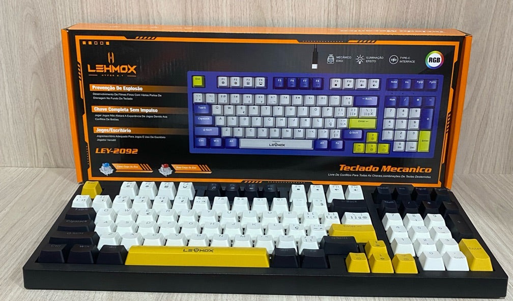 O Lehmox LEY-2092 foi desenvolvido para usuários que exigem o máximo de desempenho em suas tarefas. Equipado com os renomados Switches Outemu Blue, este teclado oferece o feedback tátil e sonoro característico dos teclados mecânicos de alta qualidade, garantindo que cada comando seja sentido e registrado com precisão. Com layout Português Brasil (ABNT2) e iluminação Rainbow com 13 modos diferentes, ele une a funcionalidade necessária para o dia a dia com a estética gamer moderna.